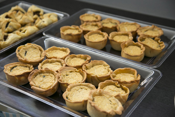 Nourrie Cuisine had the pleasure of catering a baby shower in the Washington, DC area in January. We prepared three different hors d’oeuvres for the mustache themed brunch event. Bite sized pieces made it easy for guests to mingle. We provided veggie sausage in puff pastry, mini vegan spinach quiches, and creamy berry tartlets.