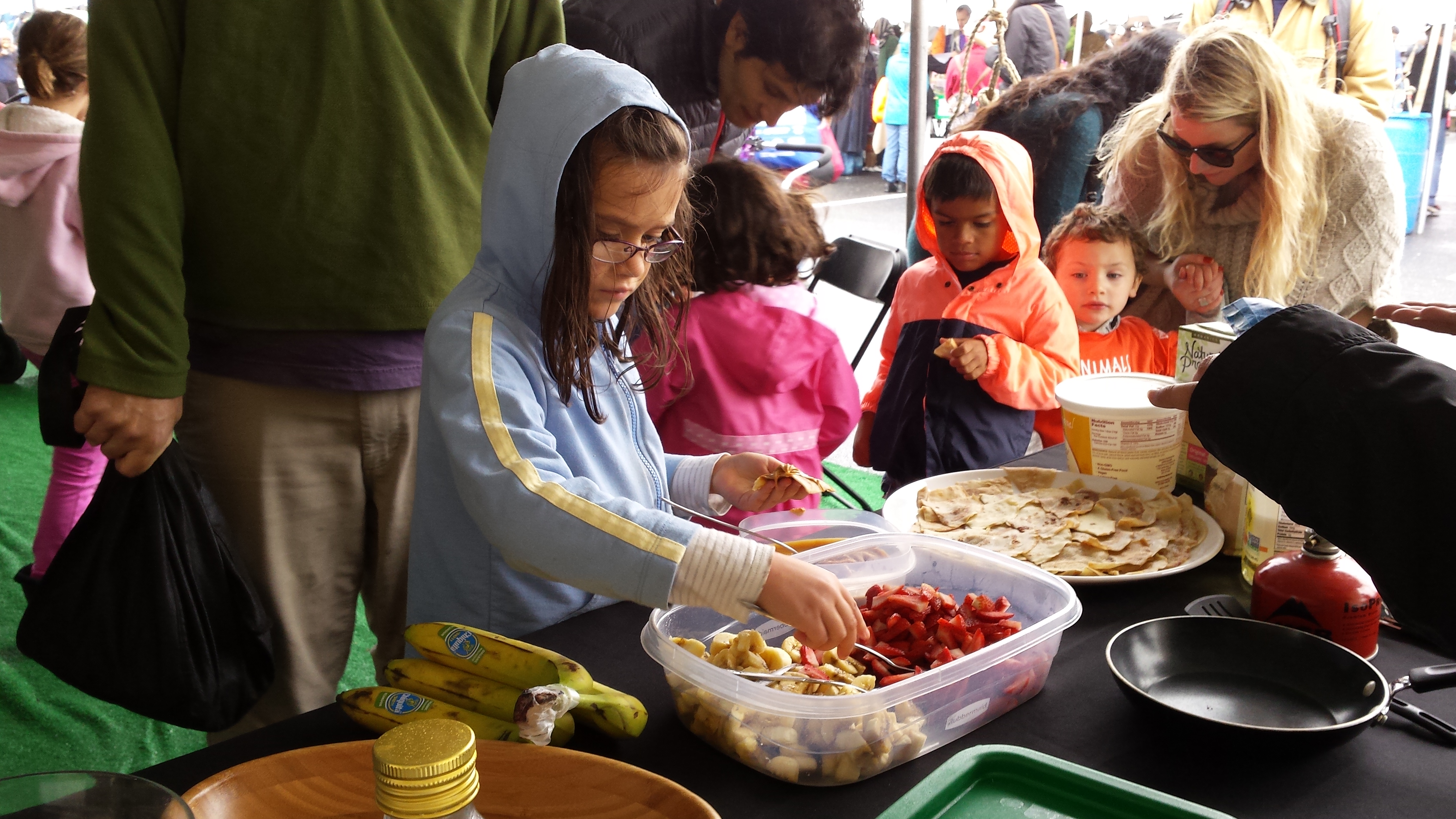 People really liked the cheesy mac and the kids enjoyed filling their own crepes with bananas, strawberries, and peanut butter!