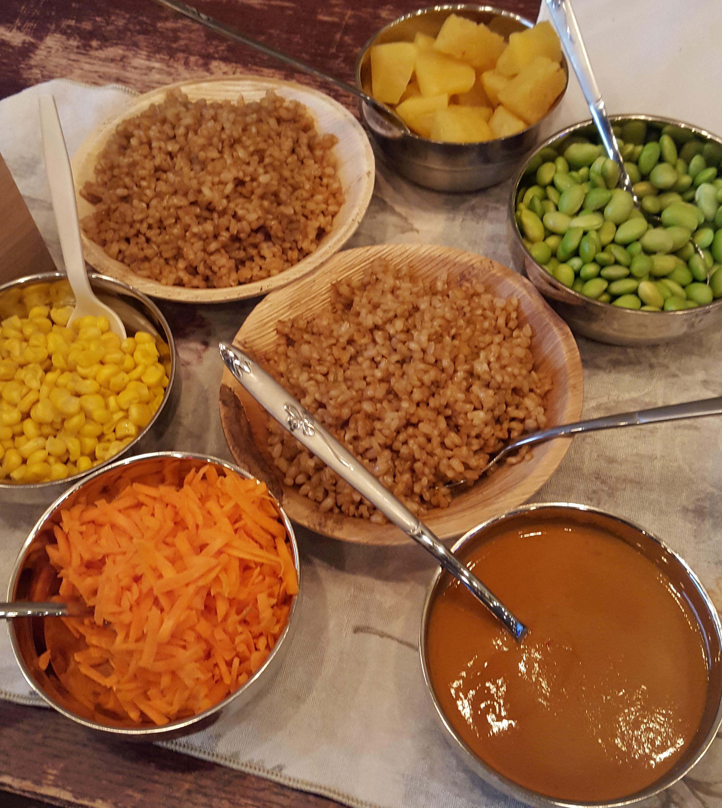 Kids got to build their own Brown Rice Bowls – choosing from a variety of healthy ingredients like edamame, corn, carrots, pineapple, and peanut sauce.